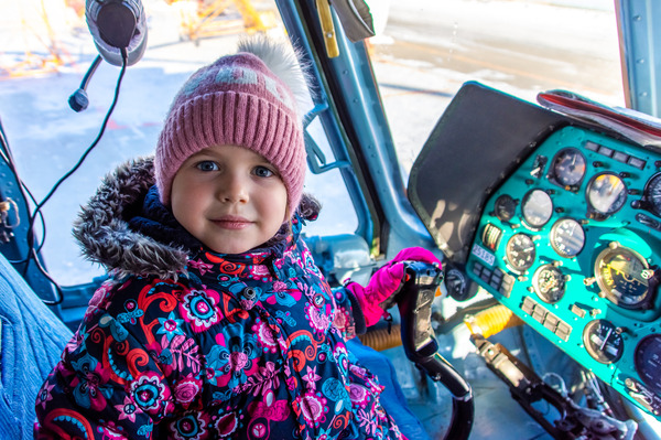 Открывая мир авиации, юные художники посетили вертолет Ми-8-МТВ1, посидели за штурвалом и представили себя в роли пилота воздушного судна. Посетив воздушное судно, дети узнали об устройстве вертолета, о его модификации, и по каким воздушным направлениям выполняет свои рейсы авиакомпания.