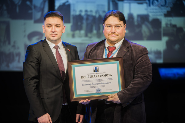 Почетные грамоты Сахалинской областной Думы авиаторам вручил председатель комитета по экономическому развитию Александр Шарифулин. Этой награды удостоены начальник управления информационных технологий Дмитрий Голованов, инженер аэродромной службы Николай Хижняков и инспектор отдела предполётного досмотра Галина Витязева.