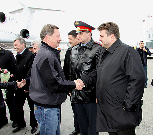 Сегодня в аэропорту Южно‐Сахалинска встретили правительственную делегацию во главе с вице‐премьером РФ Сергеем Ивановым. В ее состав вошли министр экономического развития Эльвира Набиуллина, министр регионального развития Виктор Басаргин, министр транспорта Игорь Левитин, министр природных ресурсов Юрий Трутнев, другие представители российского правительства. Также на Сахалин прибыл глава Федерального агентства воздушного транспорта Александр Нерадько.